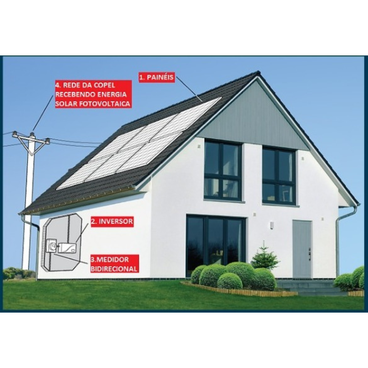 ⚡Durante o dia gera-se energia e o excedente produzido é injetado na rede elétrica, ficando como créditos. O saldo de energia poderá ser utilizado para abater o consumo nas faturas dos meses subsequentes.